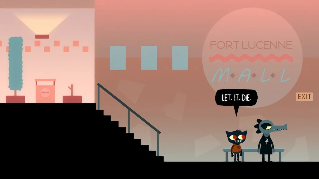 now yeah, not every fan of this game is an asshole and there are some things to like here–a few scenes with bea when mae isn't being a total piece of shit can almost be nice, the OST is pretty and the game can have some nice setpieces and environments and a few minigames i liked. Tthere are some cool ones like how each event will have a bespoke minigame or two to play with like acting out a play, hitting things with a bat, a water fountain turret segment, looking for items and some cool first person minigames where you get to control a paw, but it is balanced out by things like a really bad music minigame that's overly difficult and a pretty boring Zelda clone that has some neat ideas like how your health goes down as levels continue but your dashes get stronger and more plentiful but just isn't interesting to play and much like the music minigame is pretty difficult. plus, the town itself is nice even if there isn't much to do in it. same with some of the other explorable areas like the mall and the historical society and the bar. Though, the art style of the characters i find really unappealing. the simple aesthetic and furry character designs both do less than nothing to me and i find it to be a game that's just not really all that pleasant to look at sometimes. it's not that nice to play either since the platforming is pretty bad and the game is full of overly long dream sequences that take forever to navigate and are pretty insufferable. what nice of a vibe the game does have is really dampened by how much the game itself seems to hate the place, how much it prays for its downfall and seemingly justifies it as being "well those people were shitty". it feels like it think's it's above it all in a way i just can't stand. mae herself does not help this sense of insufferableness. she's an unrepentant asshole to everyone around her, from strangers to family to her "best friends" who she constantly belittles, undermines and treats like shit, and she never really sees any punishment for it. it all gets written off as an "oh you!" character quirk and justified by "but well she's socially awkward" as if that makes up for all of the shitty things she does and how she ruins the lives of herself and the people around her. as a setting with its characters it's just so fucking awful to exist in especially since honestly her friends can really not be much better, especially Gregg who exemplifies the type of person who takes "be gay, do crimes" as their life mantra and excuse to be a total piece of shit, break things and hurt other people. it's not cool and it's all just so grating and one of the worst experiences I've ever had with a video game. it's all exemplified when in a bar scene the game makes fun of some douchey citybro dirtbag left poser types who think they're above the situation, but the reality is that NITW is those guys. it's seattle-core poser gaming at it's worst and the best part of it was the money i got on ebay for selling the damn thing–a physical copy that is still pretty pricey since it was an LRG release that people actually want. It'll run you 40-50 for the privilege generally which is not worth it in the slightest.