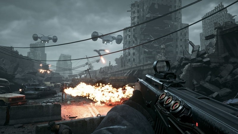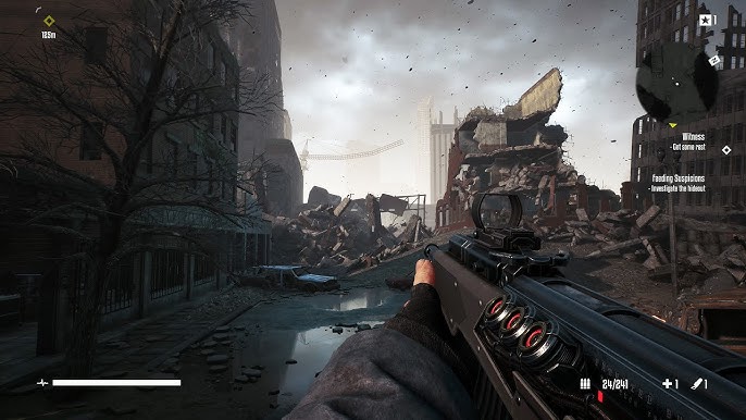 the graphics are just fine. The game has some cool levels and some neat looking hub worlds, but for the most part there just isn't much to look at here. the level themes don't do much for me , it's a lot of very similar looking area's and many of them tended to blend in together after a short time. really the only thing that differentiates some of them to me is the time of day or a set piece or two there-in like the aformentioned hospital or the final battle with it's giant mechs and the blandness makes me not really want to explore them. for the most part it's all just ruins and bases, though the california ruins near the games end do at least feel like a distinct set of ruins with some hillside mansions and tennis courts. i do like how they look at night though, they feel super grimy and oppressive and i think it gives the game a good atmosphere. The OST does much the same but i never found much of it that stands out or is really worth mentioning, feels super 90's though. the story also doesn't do much for me, but I've also never seen the movie, so all of these characters and references probably went over my head. regardless it just struggled to engage me, though i did like some of the people around the base and i liked their little side stories and personalities and i did want to see them survive. quick warning though the game has a few very out of place sex scenes with some of those characters if you do their quests. they came out of nowhere and felt super crass and a little gross, just very ill fitting for the game and they don't look very high effort either in a way that makes them feel very tacked on. The fact that almost every named woman in the game has one feels more than a little misogynistic. as far as length goes it's a good 7-9 hours which i think is a fine runtime, though the lack of variety in the gameplay and environments do make it feel like kind of a drag, especially if you factor in the DLC. It's a difficult game too. level-ups do help but on normal i found the game didn't give you nearly enough health or ammo and i frequently found myself running entirely dry of both in the early game and a lot of the stat increases feel very marginal and meaningless. i do like the atmosphere the difficulty gives the game at points but at least for me i couldn't stick with it for the whole game and changed to easy, which i had a far better time with. it's not an expensive game at least either. The ps4 version will run you about £10 but i would say to go for the ps5 version for reasons I'll get to, it's maybe £5-8 more but it has a bunch of exclusive features that make this version feel a lot obsolete.